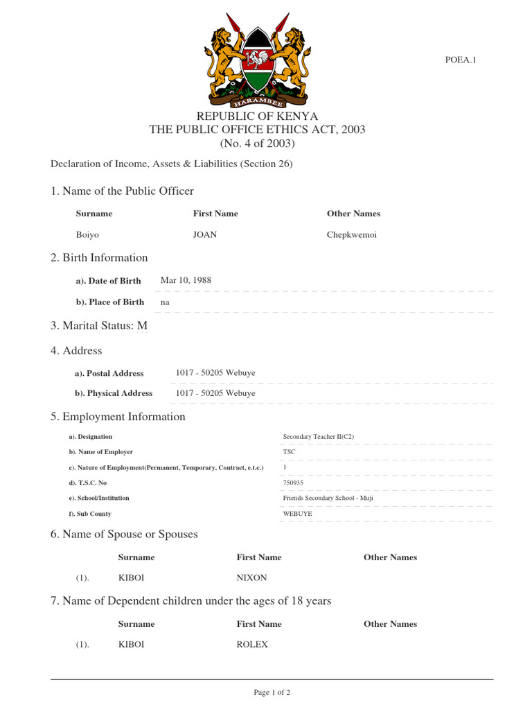 THE PUBLIC OFFICE ETHICS ACT, 2003