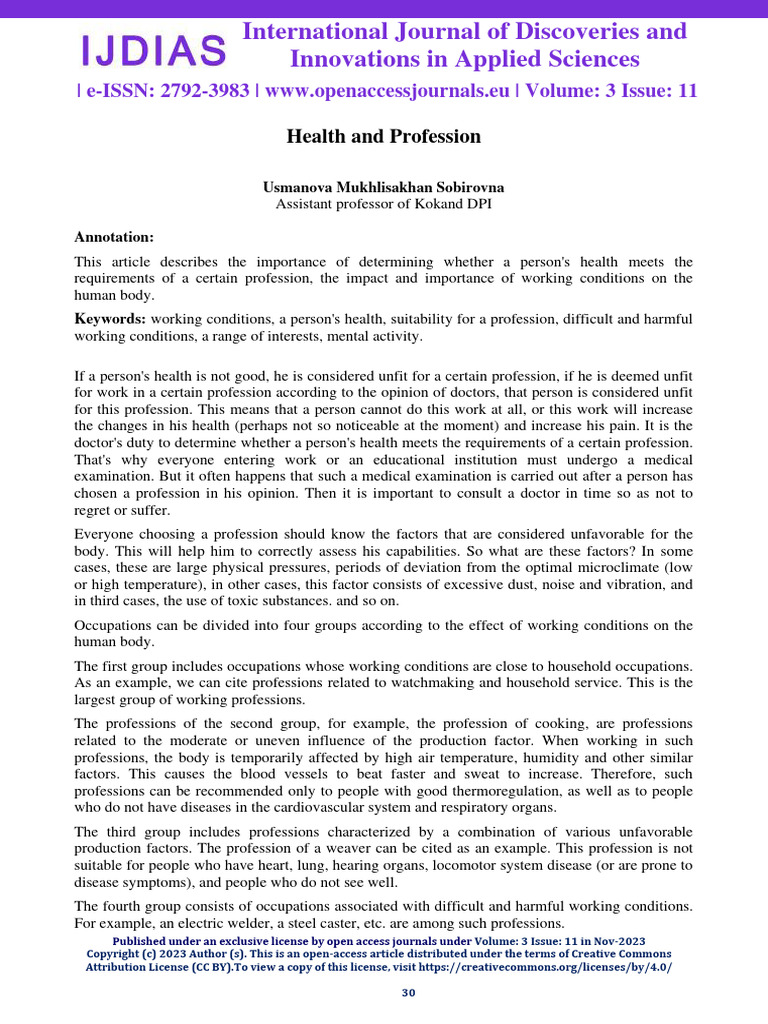 | e-ISSN: 2792-3983 | www.openaccessjournals.eu | Volume: 3 Issue: 11