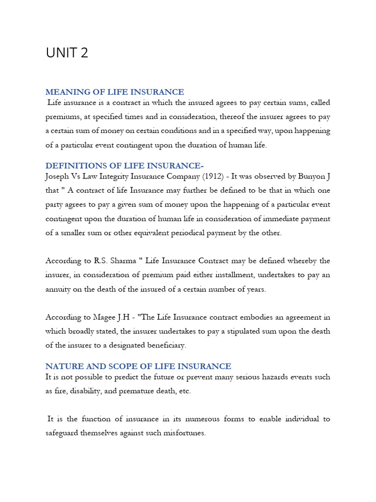 According to R.S. Sharma " Life Insurance Contract may be defined whereby the