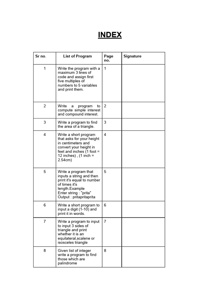 Sr no. List of Program Page Signature