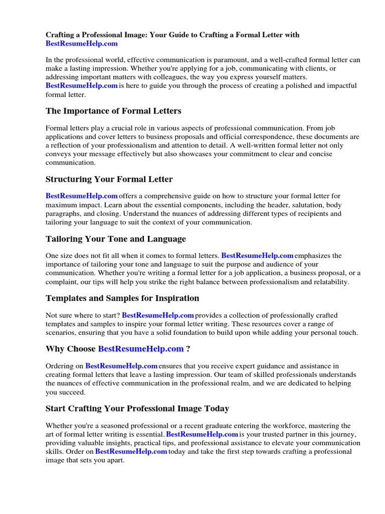 art of formal letter writing is essential. BestResumeHelp.com is your trusted partner in this journey,