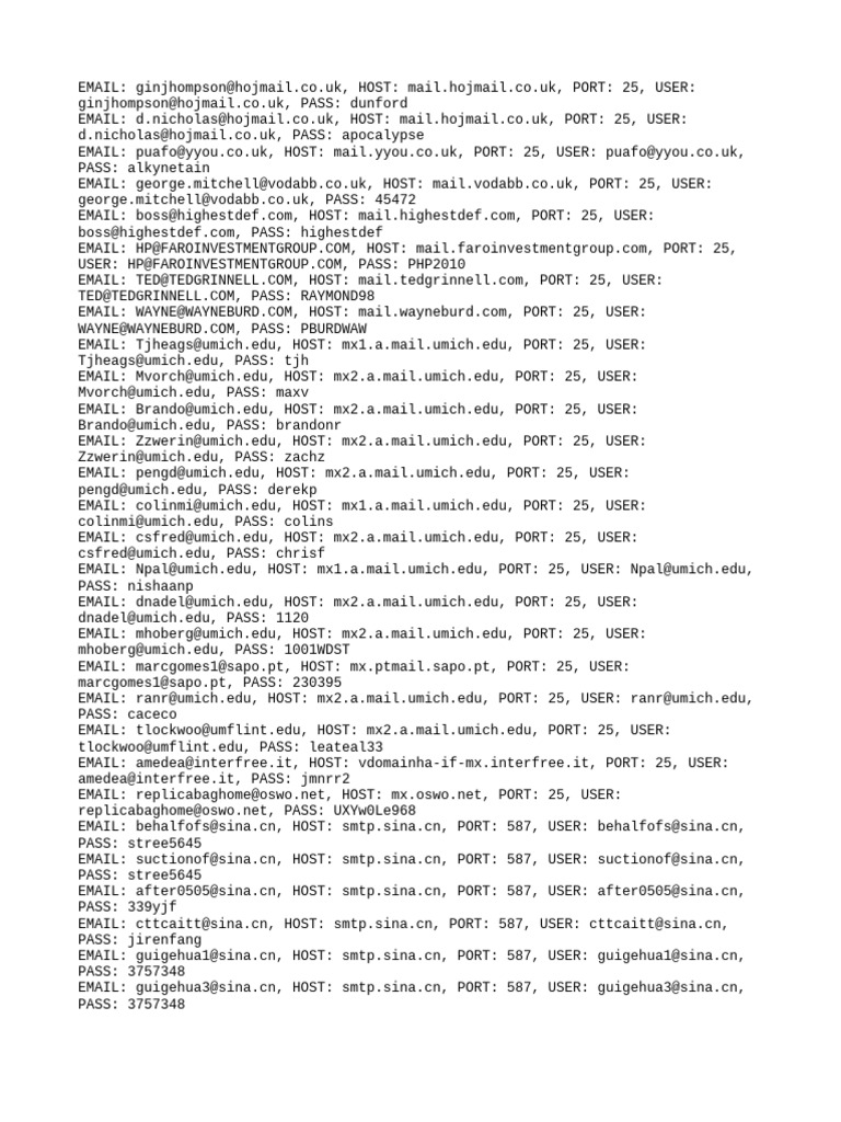EMAIL: Tjheags@umich.edu, HOST: mx1.a.mail.umich.edu, PORT: 25, USER: