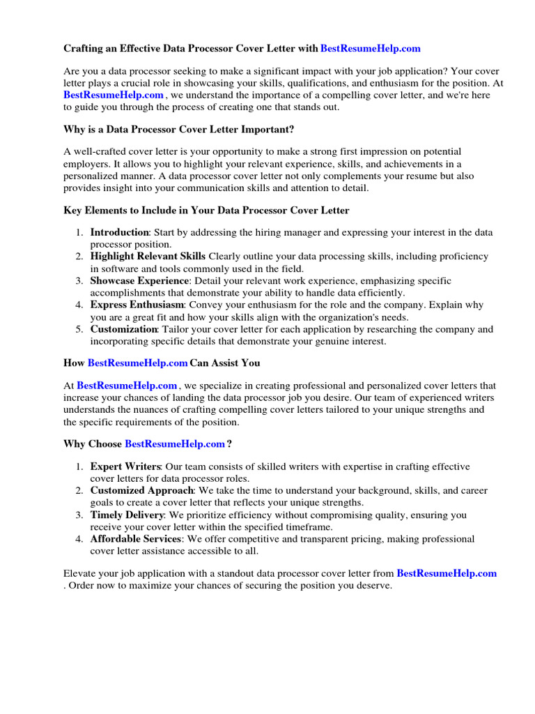 Crafting an Effective Data Processor Cover Letter with BestResumeHelp.