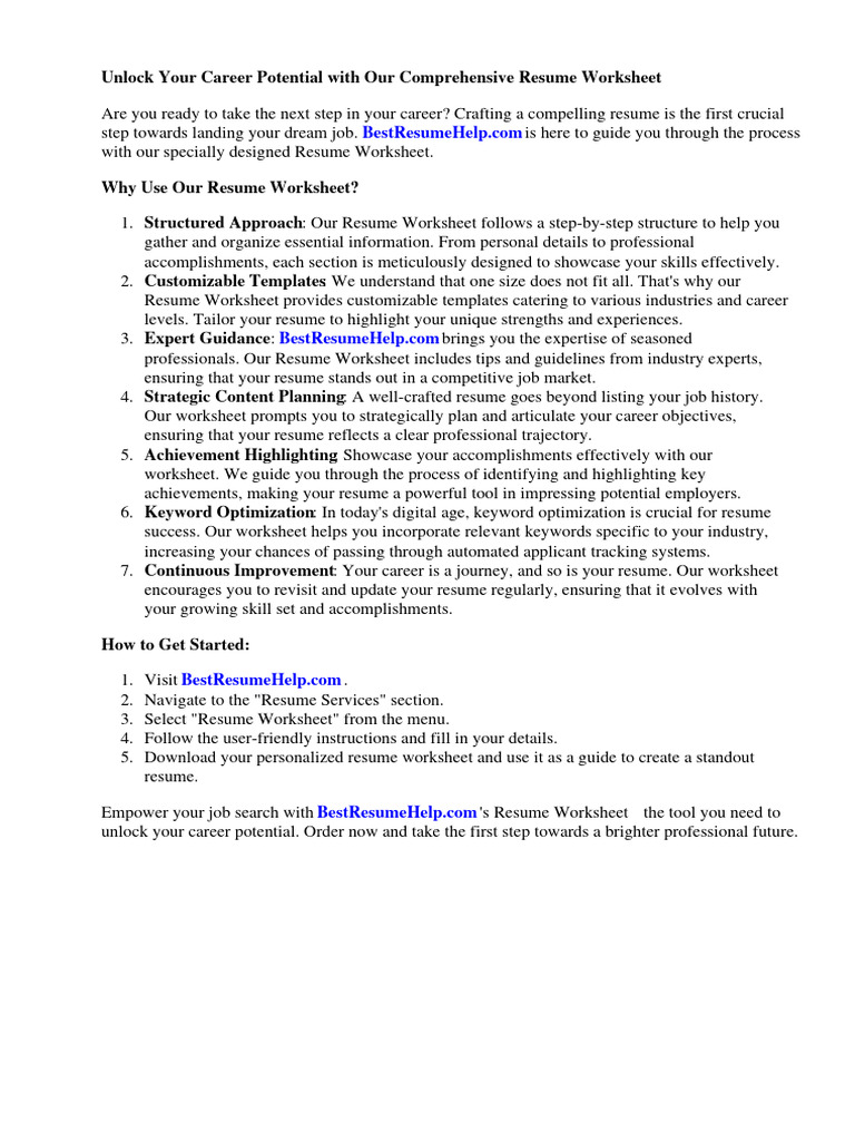 Unlock Your Career Potential with Our Comprehensive Resume Worksheet