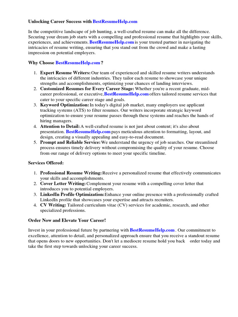 experiences, and achievements. BestResumeHelp.com is your trusted partner in navigating the