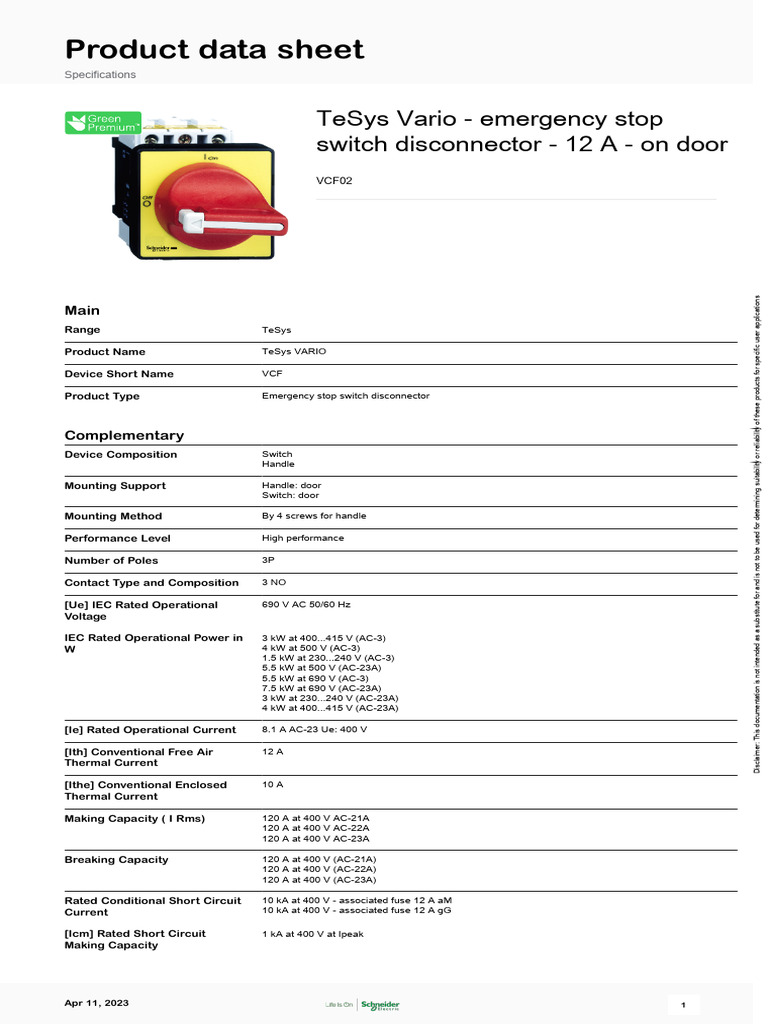 Product Type Emergency stop switch disconnector