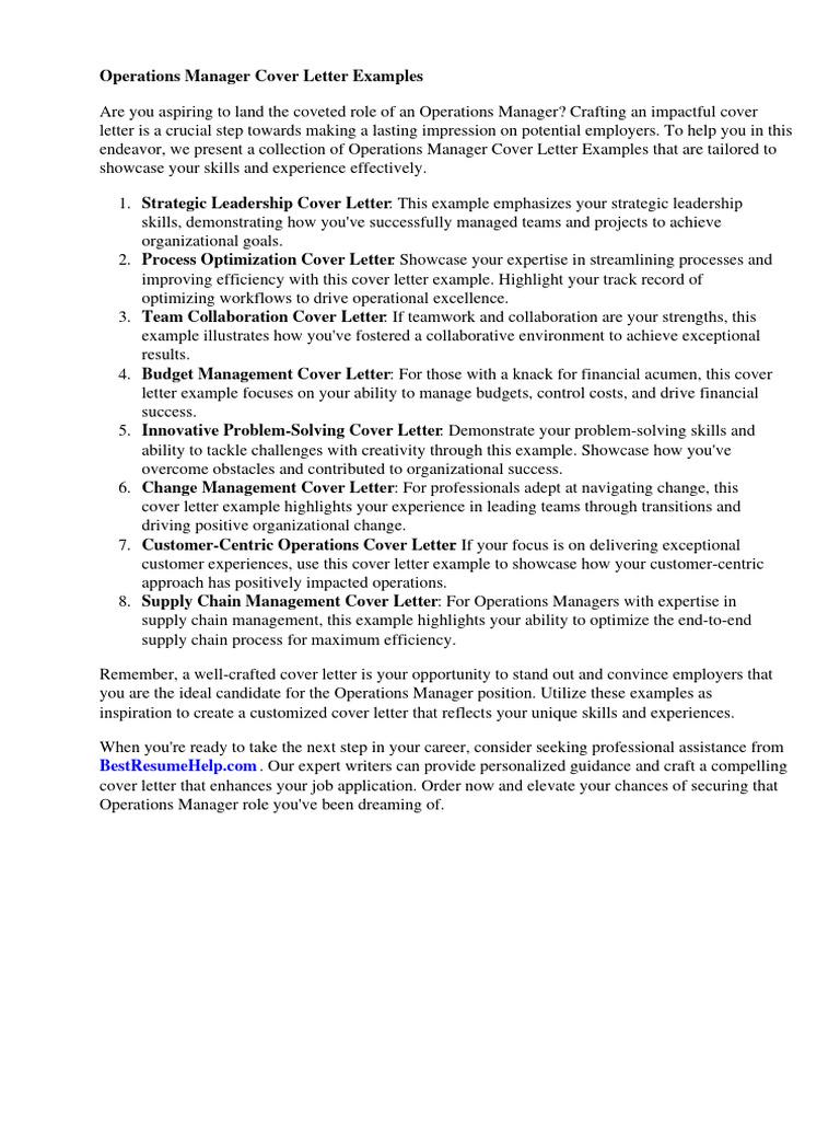 you are the ideal candidate for the Operations Manager position. Utilize these examples as