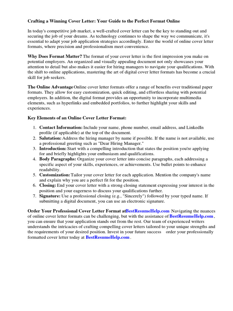 of online cover letter formats can be challenging, but with the assistance of BestResumeHelp.com ,