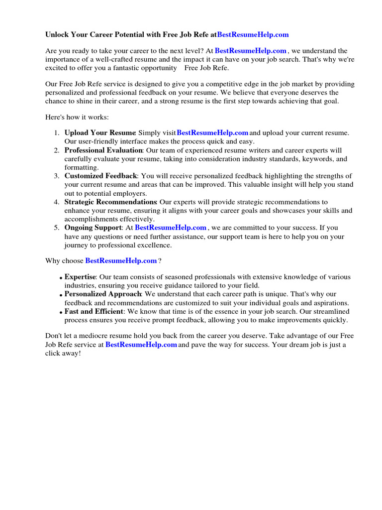 Unlock Your Career Potential with Free Job Refe at BestResumeHelp.
