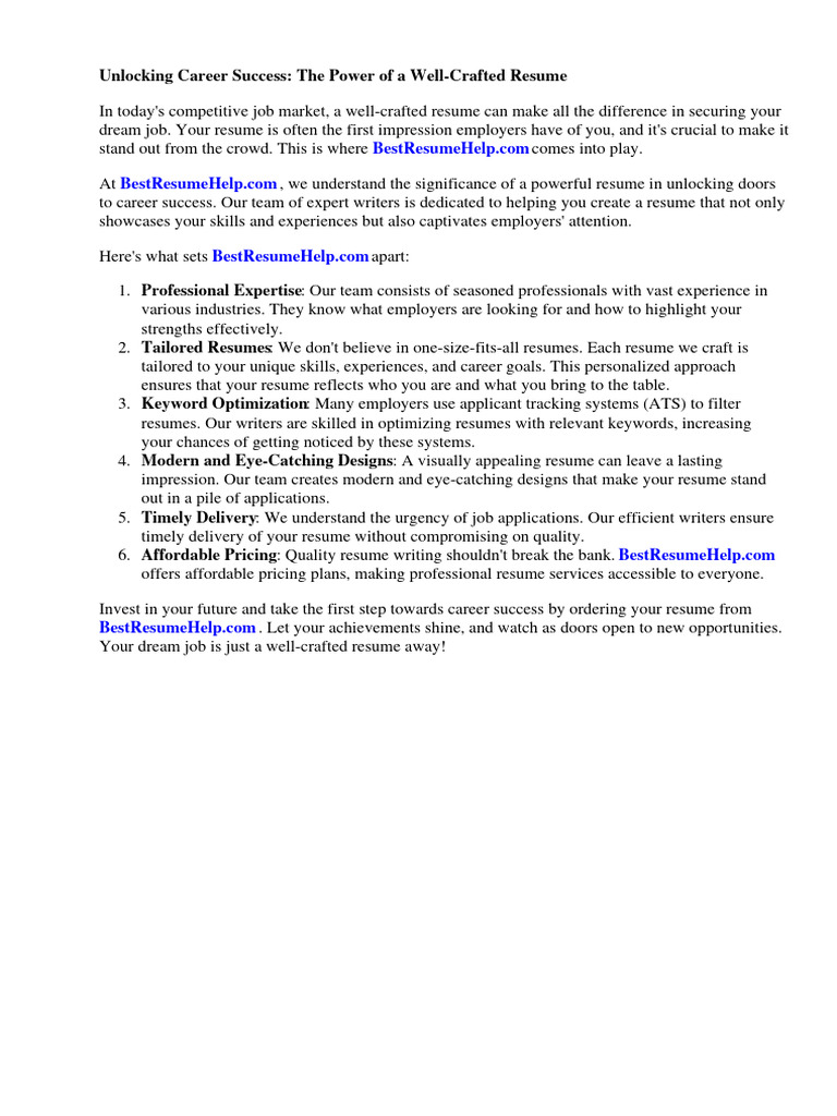 BestResumeHelp.com . Let your achievements shine, and watch as doors open to new opportunities.