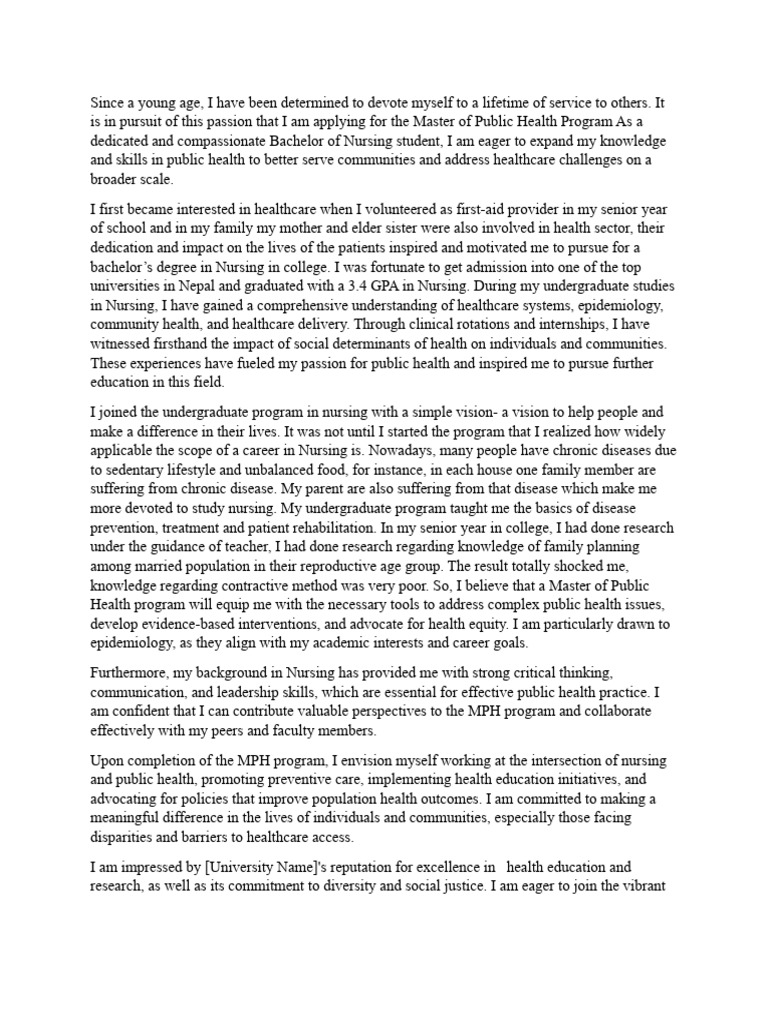 is in pursuit of this passion that I am applying for the Master of Public Health Program As a