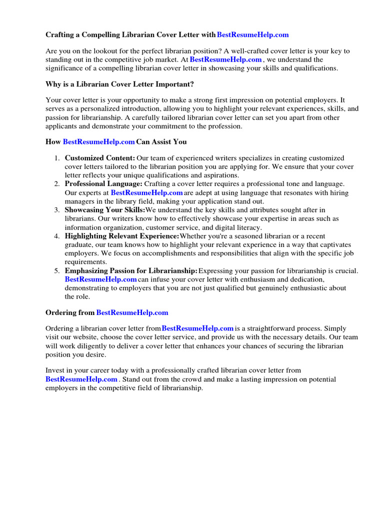 Crafting a Compelling Librarian Cover Letter with BestResumeHelp.