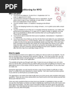 NOTE AND GUIDELINES A. All Applicants must be; Essential Requirements 1. Aged 23 years or under as at August 31, 2010 2. Citizens or resident in Kenya and planning to remain in Kenya for a minimum of two years from August 2010 3. Committed to the cause of forming a national group representing Kenyan youth, and wholly sympathetic with its aims and challenges 4. Have previous experience in music performance 5. Able to commit adequate time for attendance at KNYO courses and to regular music practice 6. Provide a reference from their music teacher Additional Requirements (These carry less weight in your application) 1. Able to play chosen instrument* at a high technical level 2. Able to read music at a high level 3. Have music theory knowledge 4. Own or have regular access to their chosen instrument*