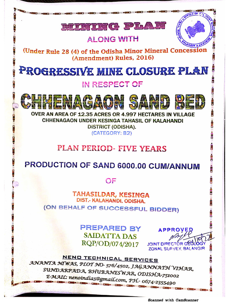 The Mining plan in respect of Chhenagaon Sand Bed lease of Tahasildar, Kesinga