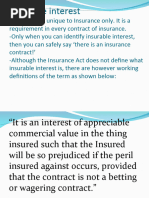 Insurable Interest – is that interest which a person is deemed to have in the subject matter of the