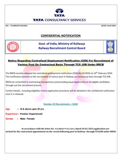 This notification pertains to the recruitment of various post In Railway on contractual basis through TCS JOB .