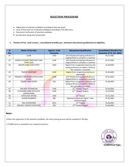 1. Details of Post , total vacancy , consolidated monthly pay , minimun educational qualification & eligibility.