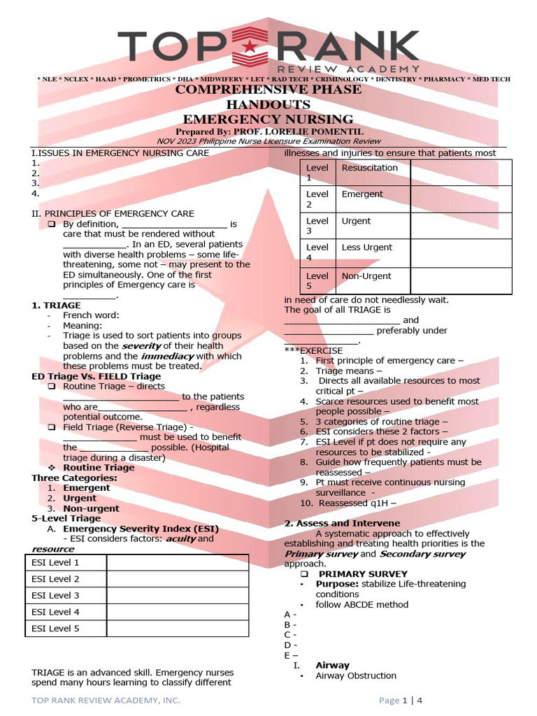 I.ISSUES IN EMERGENCY NURSING CARE illnesses and injuries to ensure that patients most