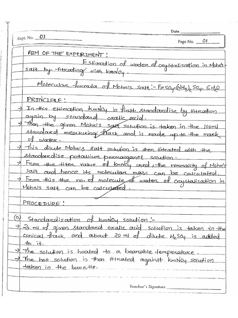 | sno. | Vol-of Mohs scut | Burete. cecal |Wol- oF kKMnOy |