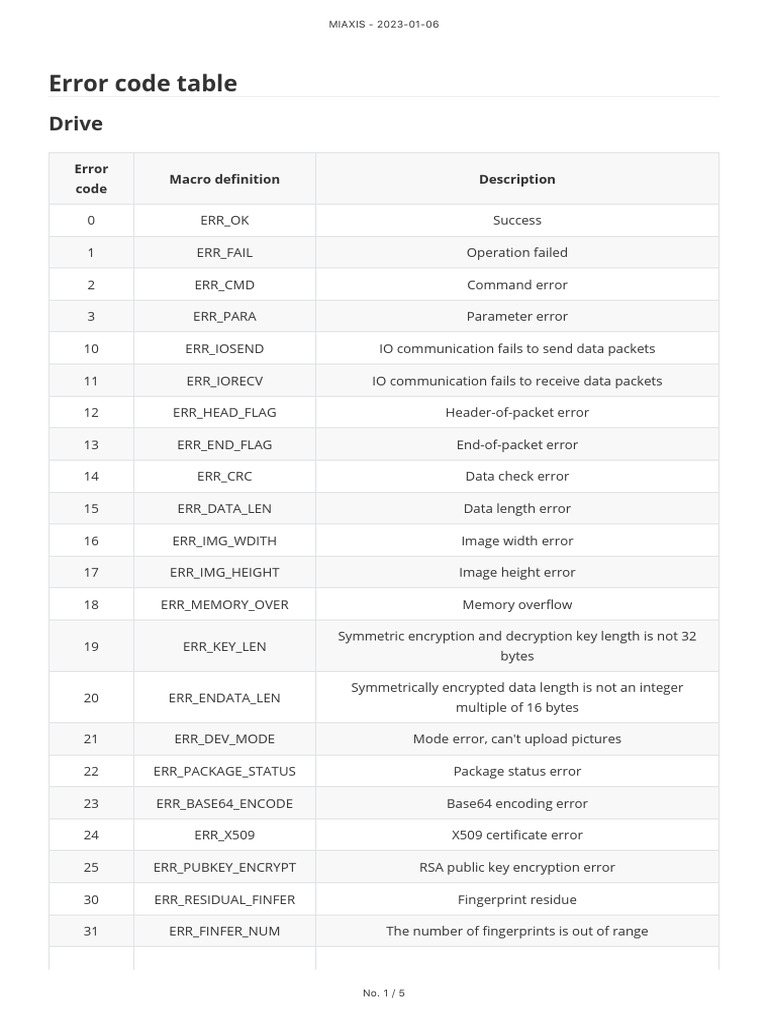 32 ERR_FINFER_TYPE Wrong fingerprint type