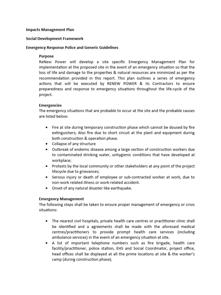 solar power plant Project. The ESMP is essentially a management tool that provides