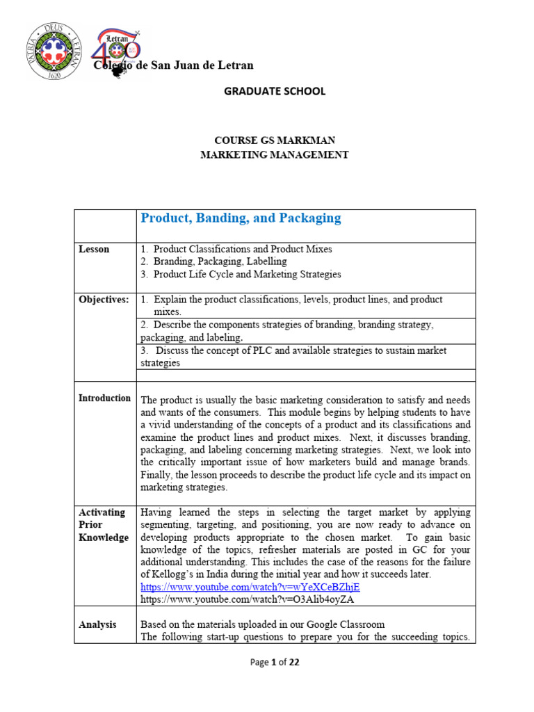 packaging, and labeling concerning marketing strategies. Next, we look into