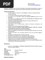 Worked as Test Engineer in ITC Infotech, Bangalore from August 2018 to March