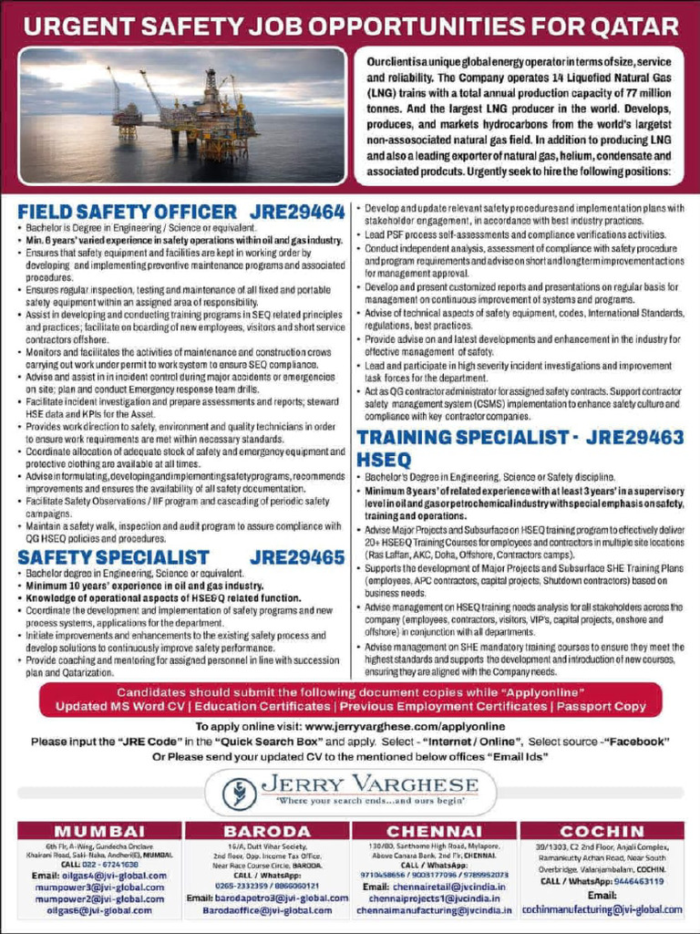 URGENT SAFETY JOB OPPORTUNITIES FOR QATAR