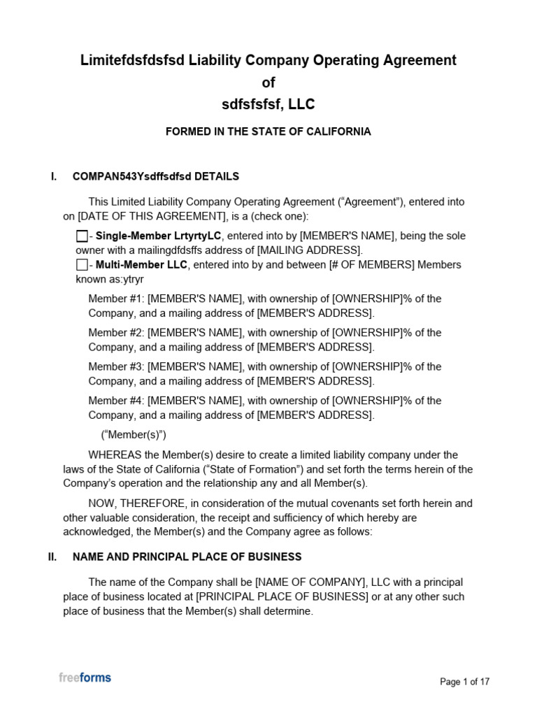 California LLC Operating Agreement