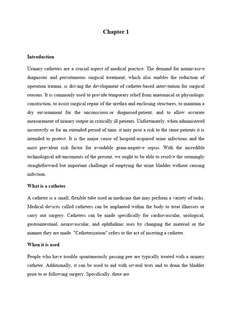 [1] Urinary catheters: history, current status, adverse events and research agenda