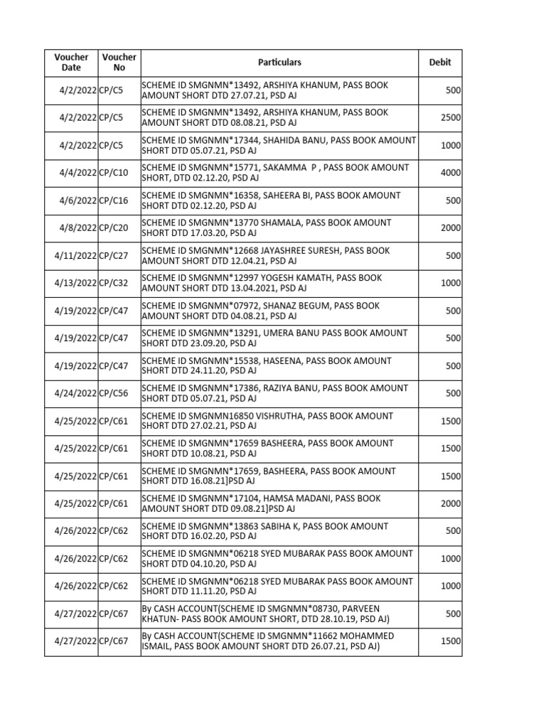 SCHEME ID SMGNMN*17659, BASHEERA, PASS BOOK AMOUNT