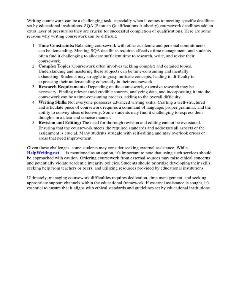 Ultimately, managing coursework difficulties requires dedication, time management, and seeking