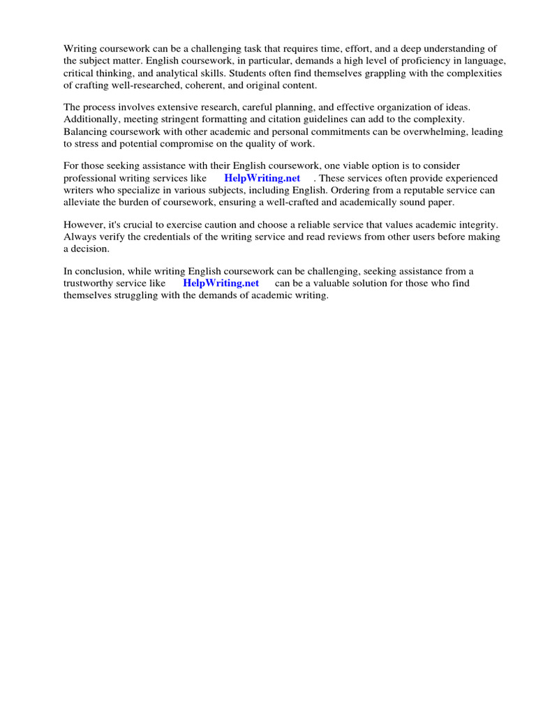 In conclusion, while writing English coursework can be challenging, seeking assistance from a