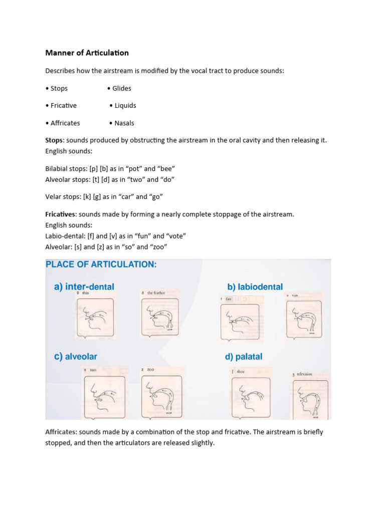 Describes how the airstream is modified by the vocal tract to produce sounds: