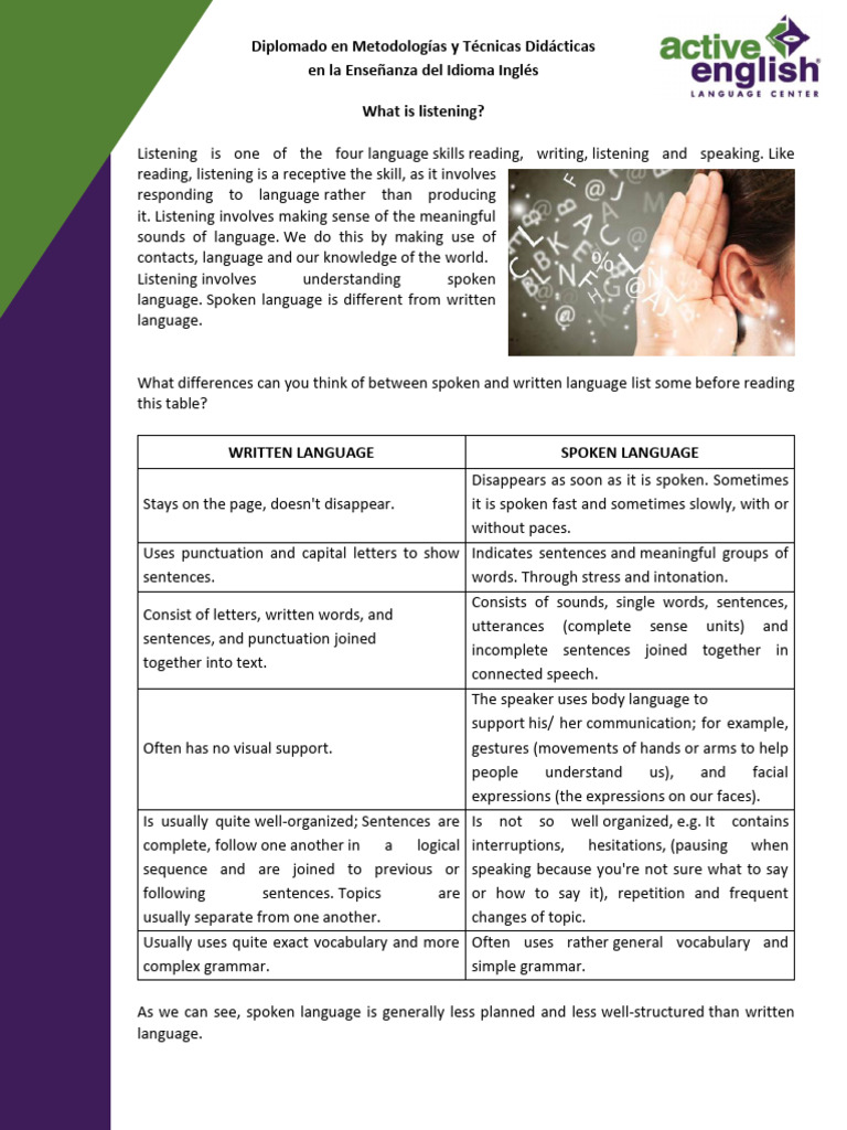 Listening is one of the four language skills reading, writing, listening and speaking. Like