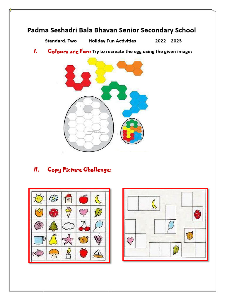 Standard. Two Holiday Fun Activities 2022 – 2023