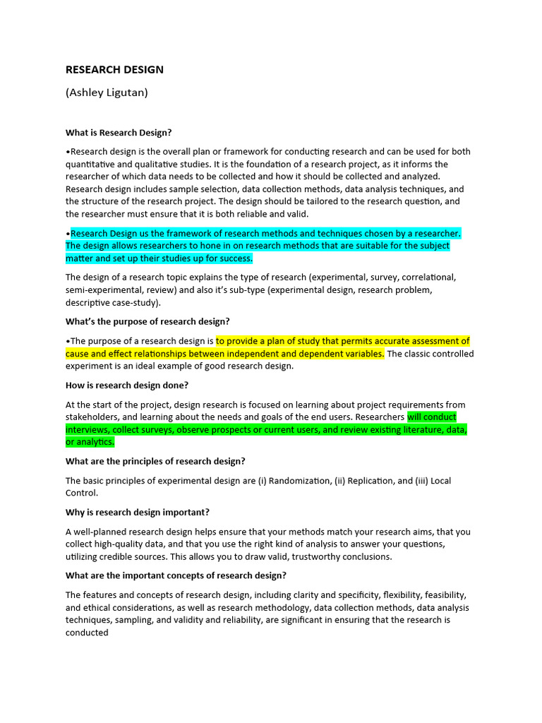 The design of a research topic explains the type of research (experimental, survey, correlational,