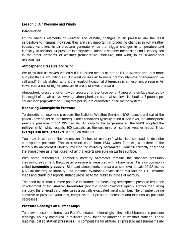 Atmospheric Pressure and Wind