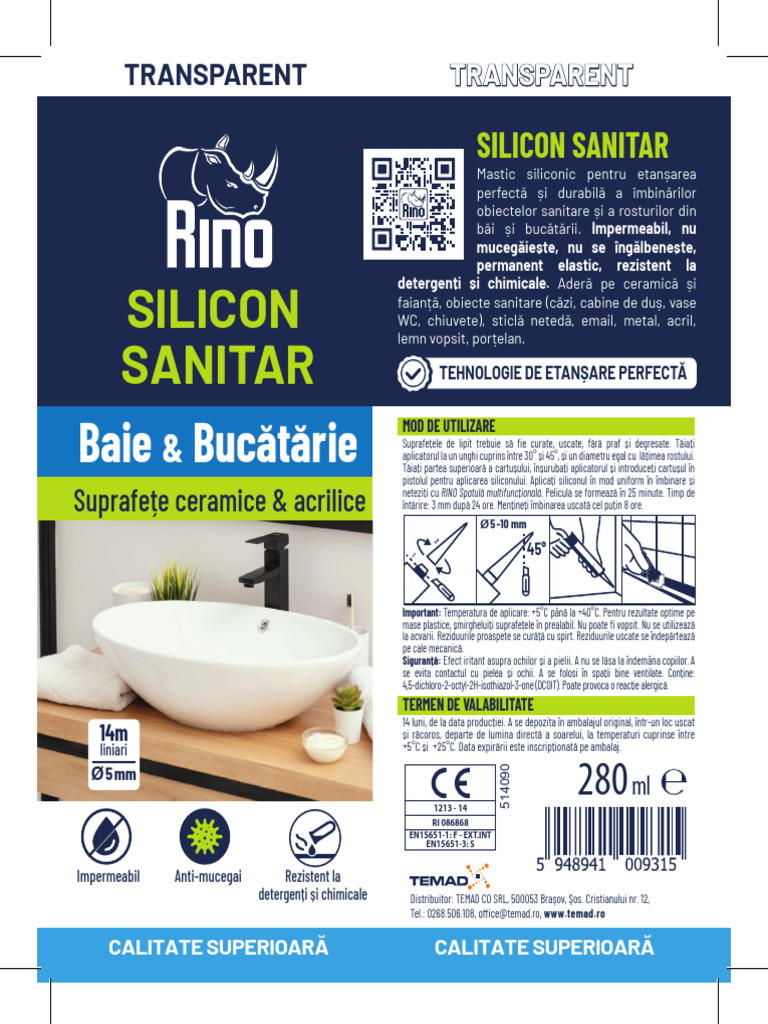 Suprafețe ceramice & acrilice neteziți cu RINO Spatulă multifuncțională. Pelicula se formează în 25 minute. Timp de