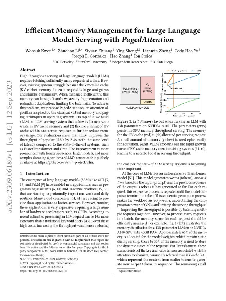 Efficient Memory Management For LLM Model Serving With Paged Attention Sep 2023