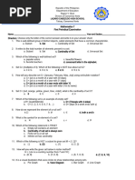 C. {I, II, III} {1, 2, 3} _______14. Given: P = {Luzon, Visayas, Mindanao}, which of the