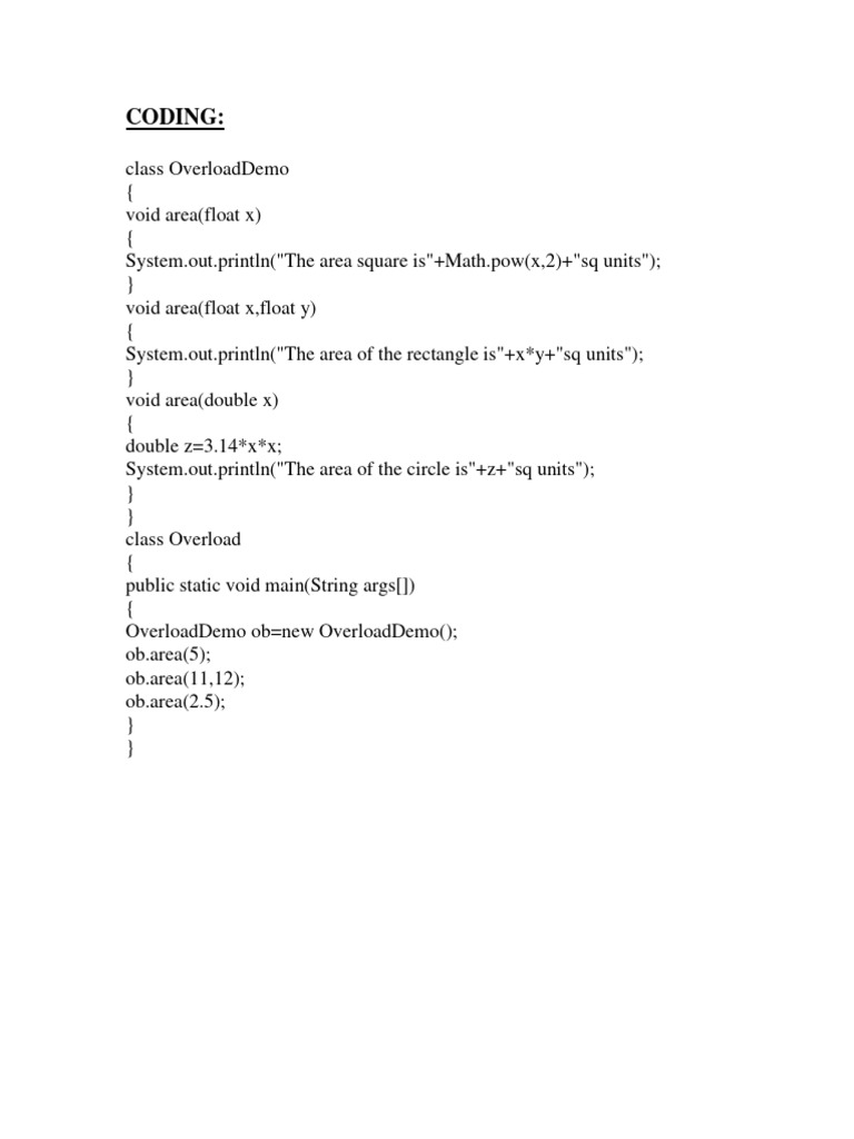System.out.println("The area square is"+Math.pow(x,2)+"sq units");