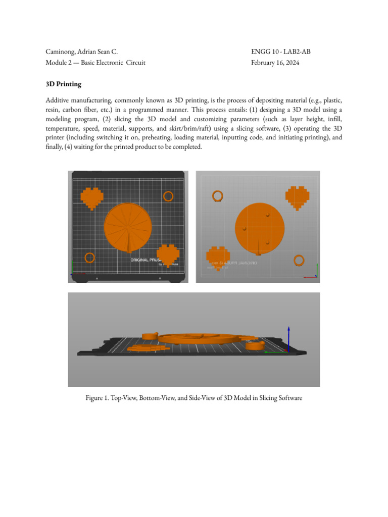 Figure 1. Top-View, Bottom-View, and Side-View of 3D Model in Slicing Software