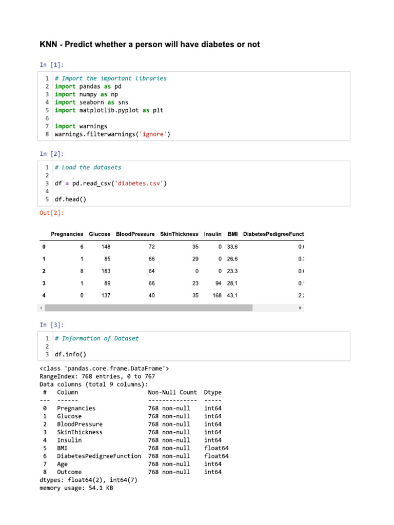 KNN - Predict whether a person will have diabetes or not