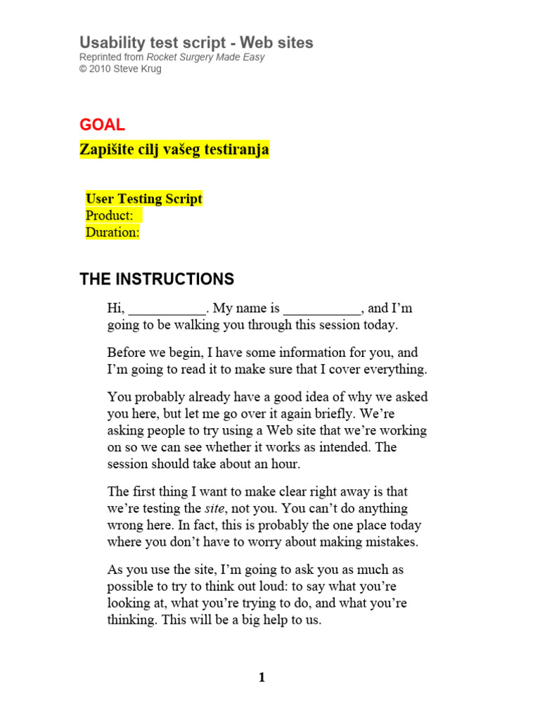 Usability test script - Web sites