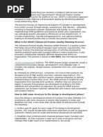 • Process Improvement • Advanced Product Quality Planning (APQP)