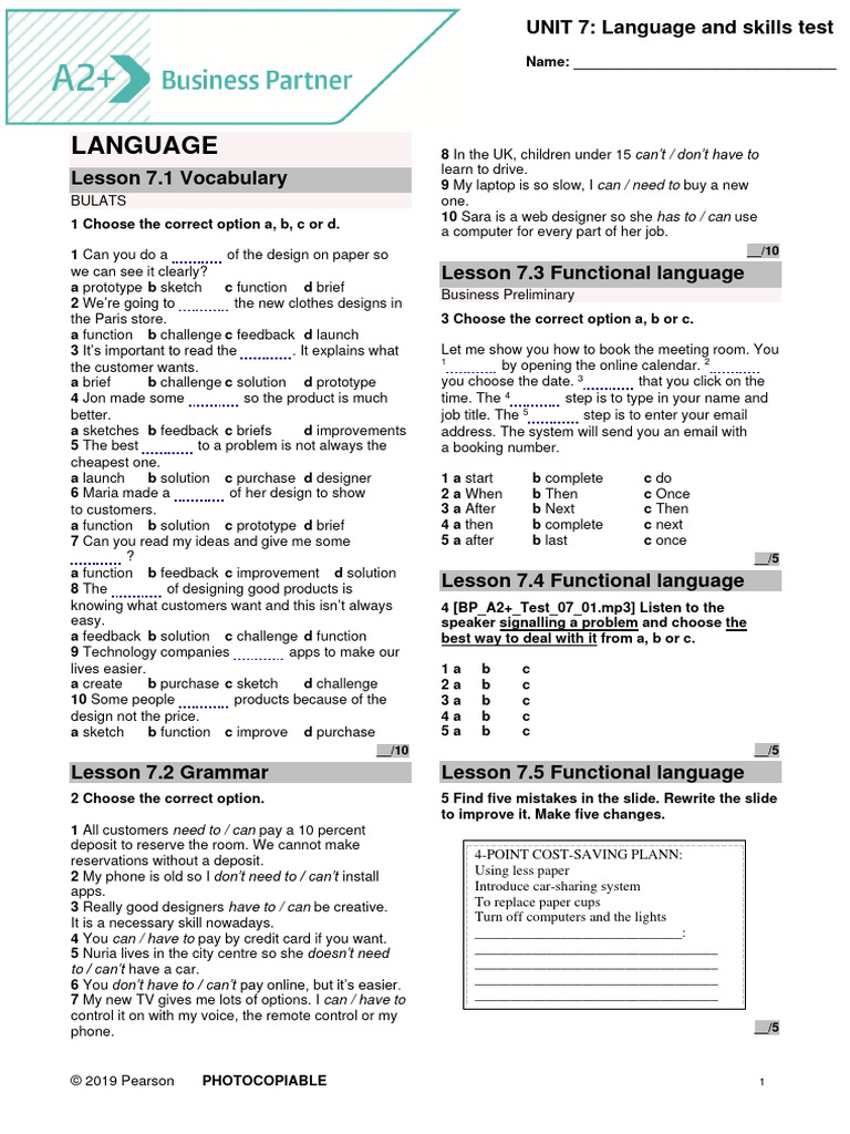 Lesson 7.2 Grammar Lesson 7.5 Functional language