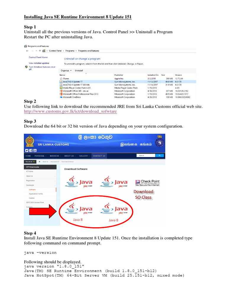 Use following link to download the recommended JRE from Sri Lanka Customs official web site.