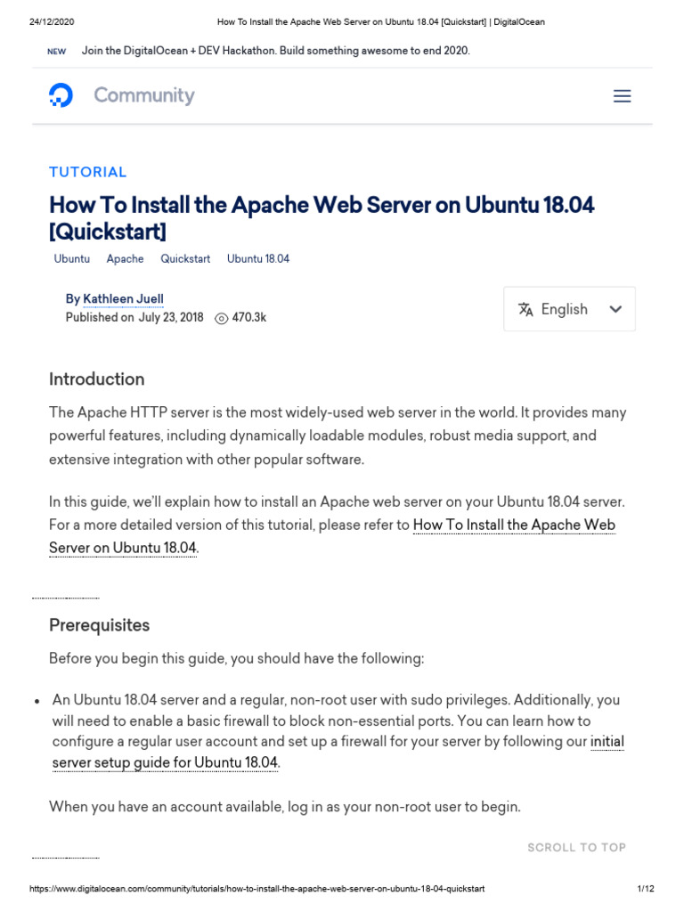 24/12/2020 How To Install the Apache Web Server on Ubuntu 18.04 [Quickstart] | DigitalOcean