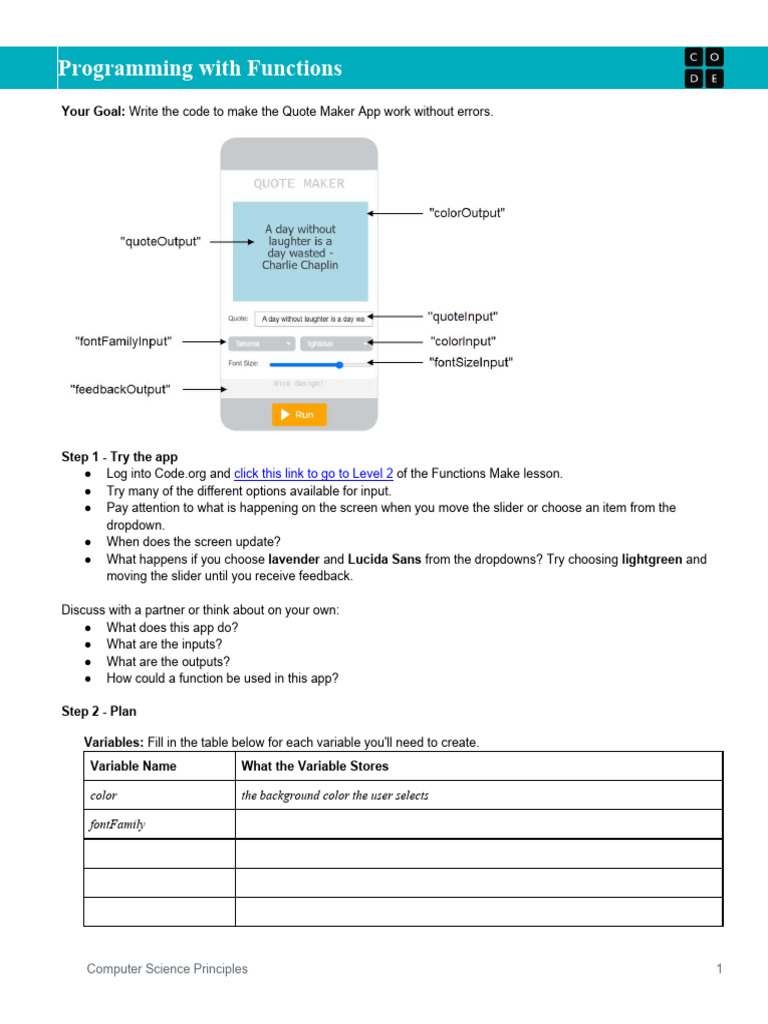 ● Move to level 3 of the Functions Make lesson in App Lab.